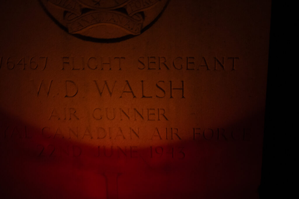 Onderwijl diverse mensen links en rechts gesproken en allen erg geïnteresseerd in de verhalen van onze “Zeister” crews. Helemaal aan het eind was iedereen weg en dacht ik alleen nog op het ereveld te staan toen ik gezang hoorde. Bleek er een oudere dame in de hoek nog te zijn die liederen zong voor de overledenen. Dit deed ze al heel lang. Vroeger met haar moeder en tante, nu nam zij het over. Prachtig! De nabestaanden en familieleden van ‘mijn’ crews zijn ook geïnformeerd en veel reacties gekregen. Dit soort avonden worden door velen, ook 80 jaar na de oorlog, ontzettend gewaardeerd. Hopelijk blijft de traditie bestaan!