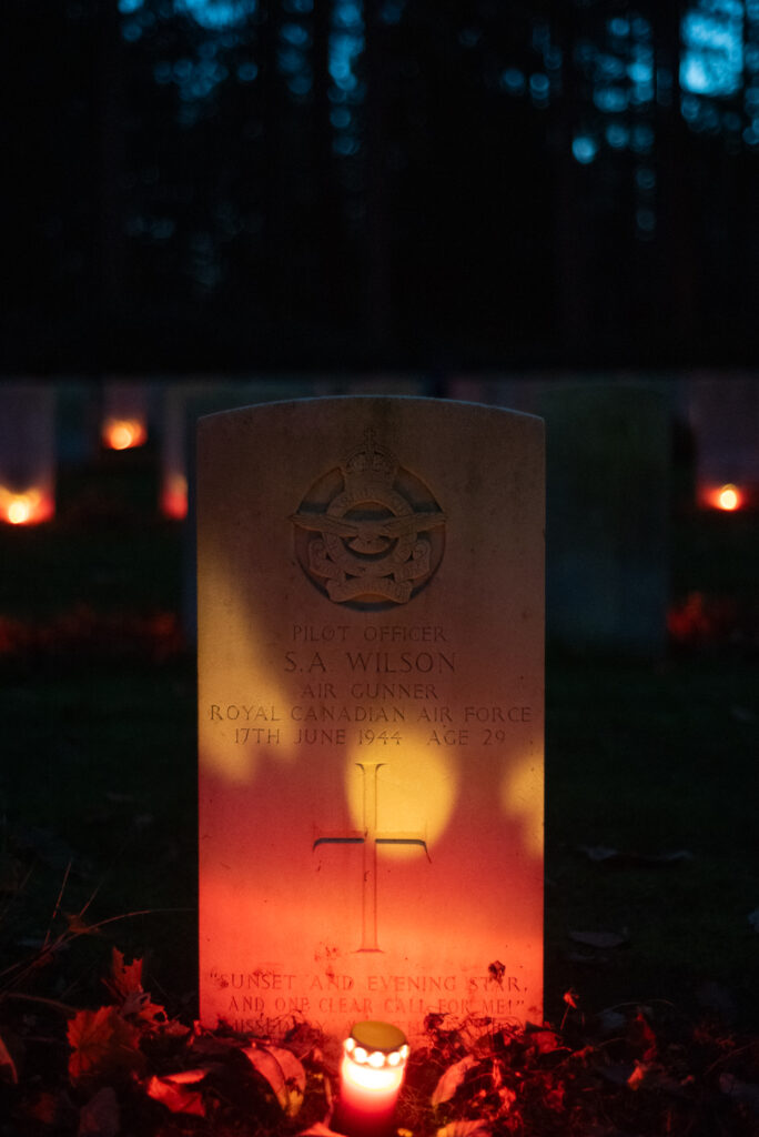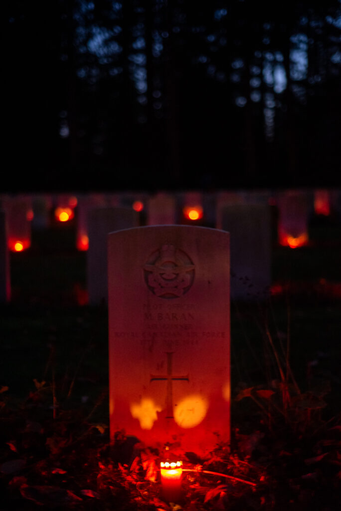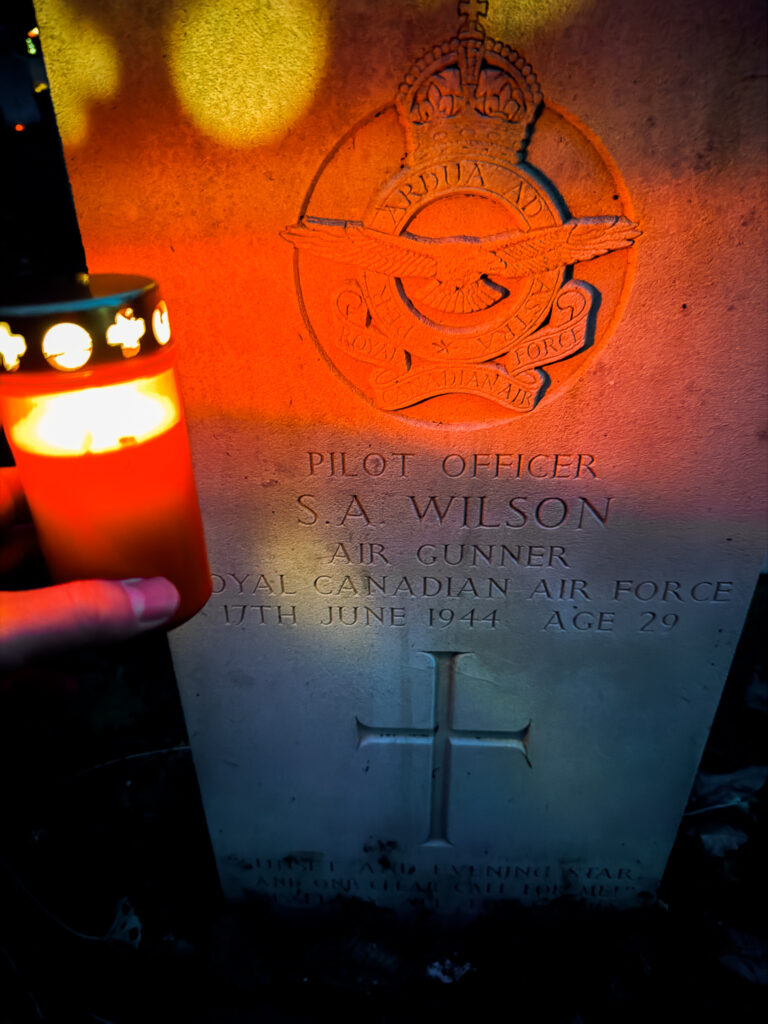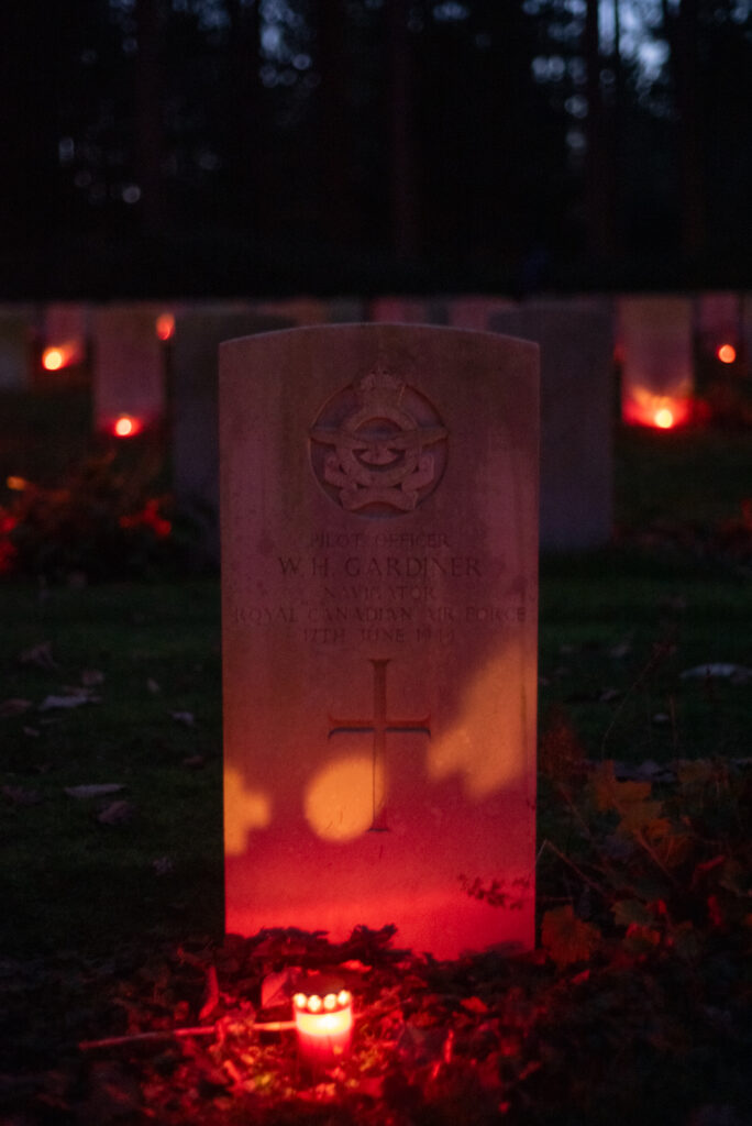 Het was nog even spannend, want het lukte dit jaar bijna niet alle benodigde kaarsen te regelen. Door diverse donaties uit een inzamelingsactie werd de benodigde 5000 euro opgehaald. Ook bedrijven als Rabobank en GWI Auto sprongen bij. Als Luchtoorlog Zeist was ik bij zowel de herdenking van het Sovjet Ereveld als die van de Geallieerden en ging mijn interesse met name uit naar ‘onze’ vier crews. De Lancaster KB734 is door mij geadopteerd dus die moest en zou ik zelf verlichten. Een klein verslagje.