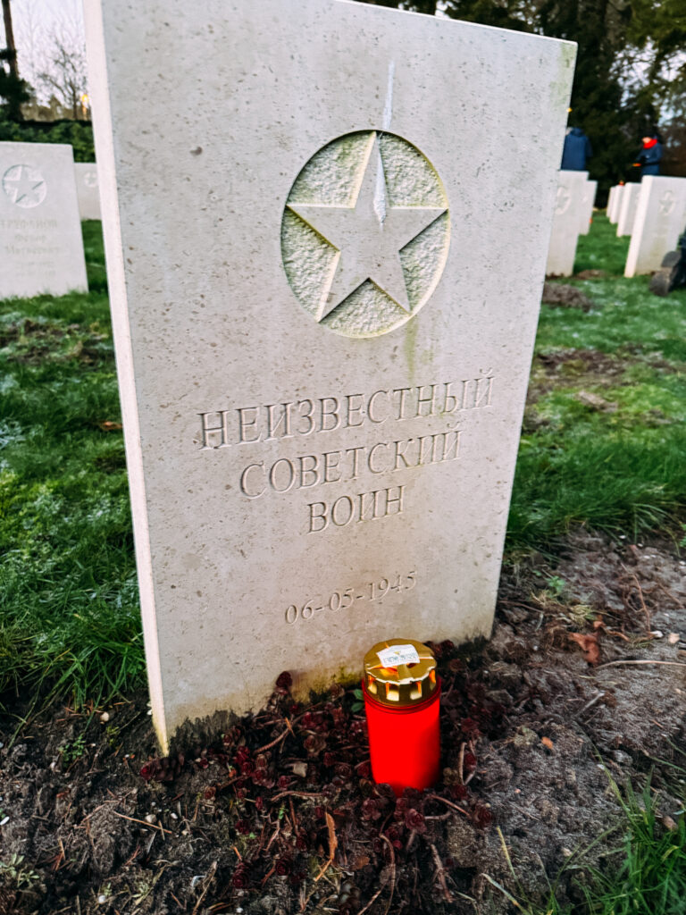 Na een woordje van de burgemeester en het gezamenlijk ontsteken van kaarsen bij het monument deelden de vrijwilligers van Sovjet Ereveld de dozen met kaarsen uit en gingen de circa 60 vrijwilligers aan de slag. Het was pittig koud met een windje, maar het lukte toch om in no time alle honderden graven van een kaarsje te voorzien.